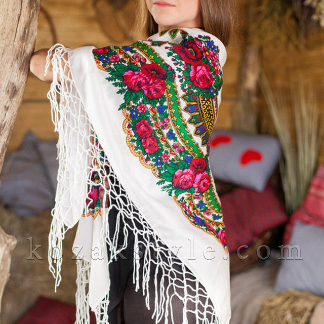 Розмір 120*120 + 18 см плетена бахрома з кожного боку.