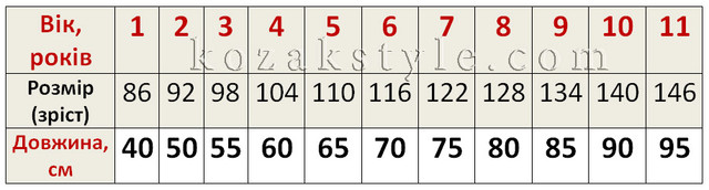 | Розмір дитячого одягу | Натисніть на потрібний розмір: |
