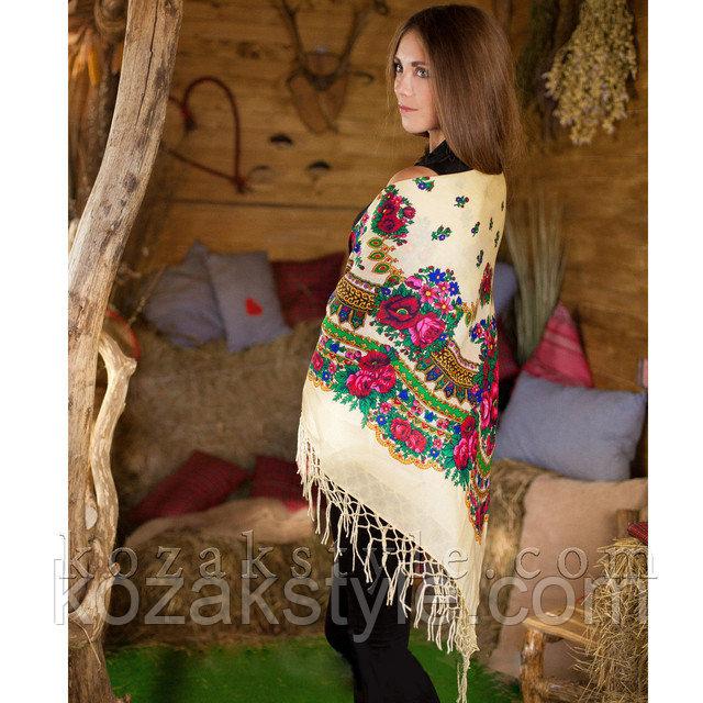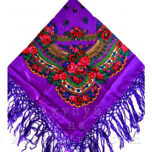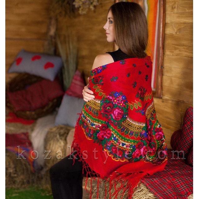 Українська хустка з яскравим квітковим візерунком.