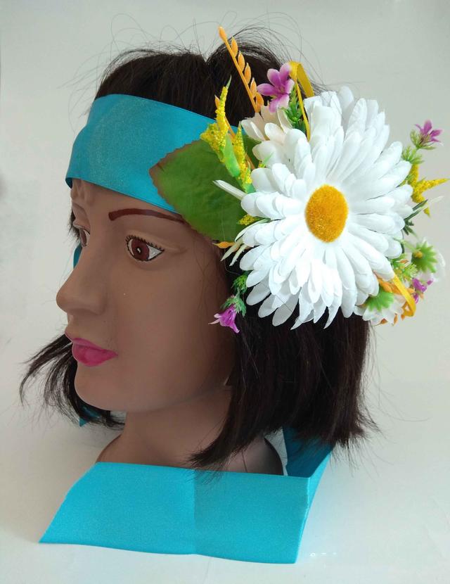 Атласна стрічка з квіткою Ромашка 145 х 5 см з квітковим букетом з ромашки та польових квітів .